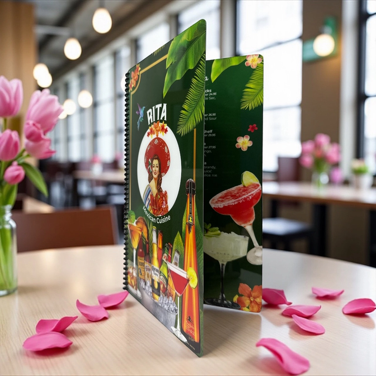• Mantén la Frescura de los Colores: Aunque es resistente al agua y fácil de limpiar, te recomendamos no utilizar químicos abrasivos para conservar los colores vibrantes. Esto asegura que tu menú mantenga su aspecto fresco y llamativo.